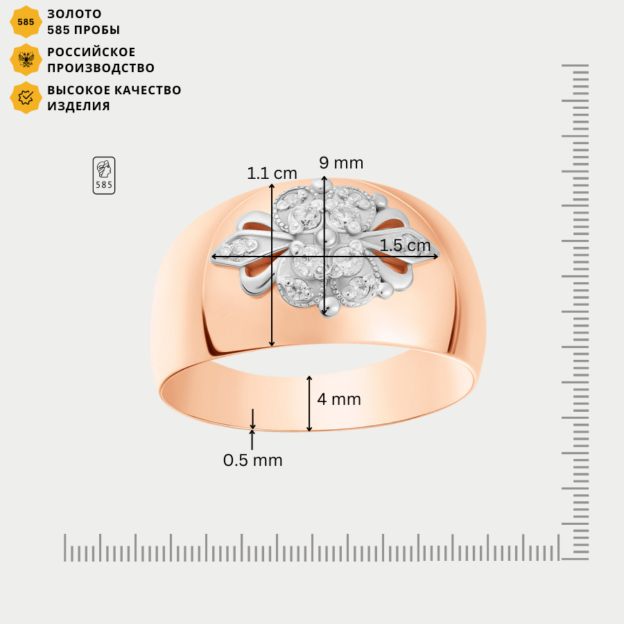 Кольцо бренда ATOLL из розового золота 585 пробы с фианитами.