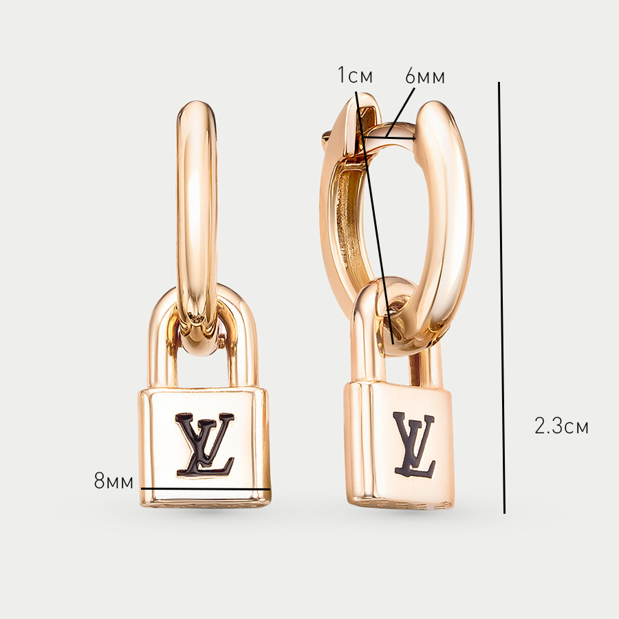 Длинные серьги бренда Berger из красного золота 585 пробы без вставок с надписью LV.