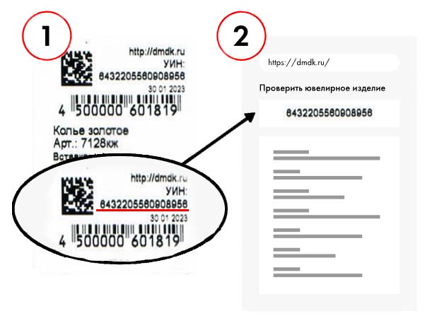 1. введите УИН, указанный на бирке украшения, на сайте dmdk.ru